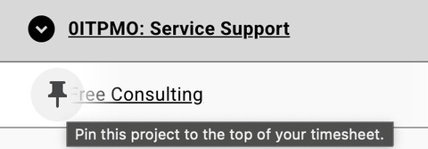 Pinning Categories: Users can pin frequently used Projects for easier access. Hover over the Project for the icon of a pin to display.